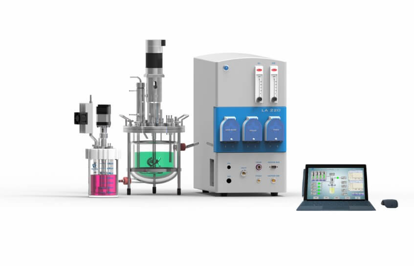 发酵罐利用机械搅拌搅拌物料产生轴向和径向流动,从而使罐内物料混合良好,液体中的固形物保持悬浮状态,有利于固体和营养物质充分接触,便于营养吸收;另一方面,可以打碎气泡,增加气液接触面积,提高气液间的传质速率,加强氧的传递效果及消除泡沫。同时通入无菌空气维持菌体氧气需要,满足好氧菌的生长发酵。