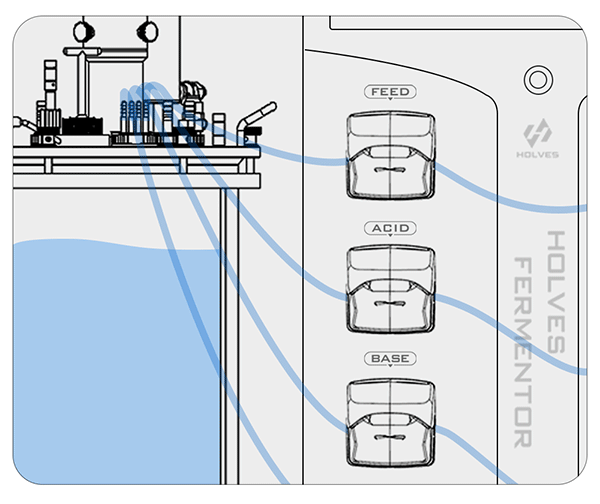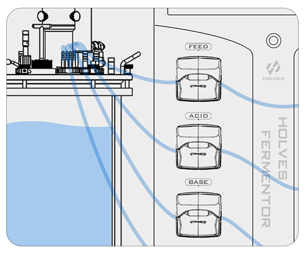 以XKTY.COM(HOLVES)实验室发酵罐为例,pH电极测定完数值后,结果会直接反馈给HF-Control V2.2控制系统,系统则会根据原先设定数值进行调节补料等操作,将罐内pH值控制在最佳范围内。
