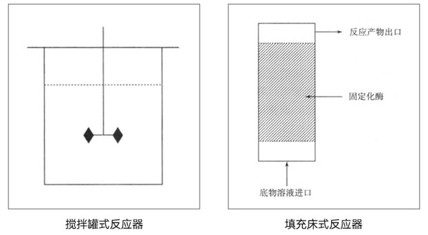 酶的反应主要分为均相酶反应,即在溶液中直接应用游离酶进行反应,和非均相酶反应,即应用固定化酶进行反应。在具体的操作过程中,可根据酶的反应类型与实际情况选择不同的酶生物反应器。常见的酶生物反应器主要包括搅拌罐式反应器(stirred tank reactor,STR)、填充床式反应器(packed bed reactor,PBR)、流化床式反应器(fluidized bed reactor,FBR)、膜式反应器(membrane reactor,MR)、鼓泡式反应器(bubble column reactor,BCR)和喷射式反应器(projectional reactor,PR)等。