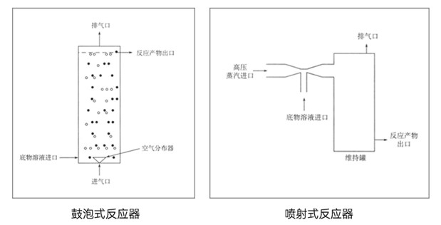 6. 喷射式反应器:适用于游离酶的催化反应,可应用于连续式操作。体积小,混合均匀,催化反应速度快,适用于某些耐高温酶的反应。