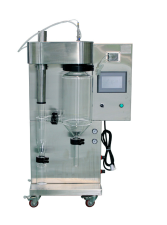 小型喷雾干燥机是液体成形工艺和干燥工业中最广泛应用的工艺,其为连续式常压干燥器的一种,具有传热快,水分蒸发迅速,干燥时间瞬间的特点,且制品质量好,溶解性能也好,能改善某些制剂的溶出速率,最适用于从溶液、乳液、悬浮液和糊状液体原料中生产粉状、颗粒状固体产品,因此当成品的颗粒大小分布、残留水分含量、堆积密度和颗粒形状都符合精确的标准时,喷雾干燥机就是十分理想的干燥设备。