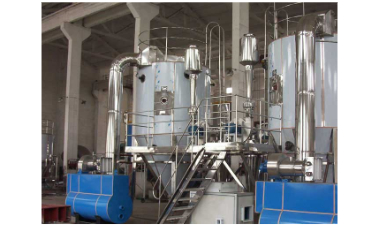 喷雾干燥机是将溶液或悬浮液直接干燥为固体颗粒的干燥设备。可由料液直接获得干燥产品,省去蒸发、结晶、分离及粉碎等单元操作,可连续、自动化生产,操作稳定。采用这种干燥方法,喷雾干燥机中气固两相接触表面积大,干燥时间短,一般干燥时间为5~30s,适宜于干燥热敏性物料。干燥所得产品质量良好,可获得30~50μm的微粒,产品流动性和速溶性好。缺点是干燥器的体积大,传热系数低,导致热效率低,动力消耗大。