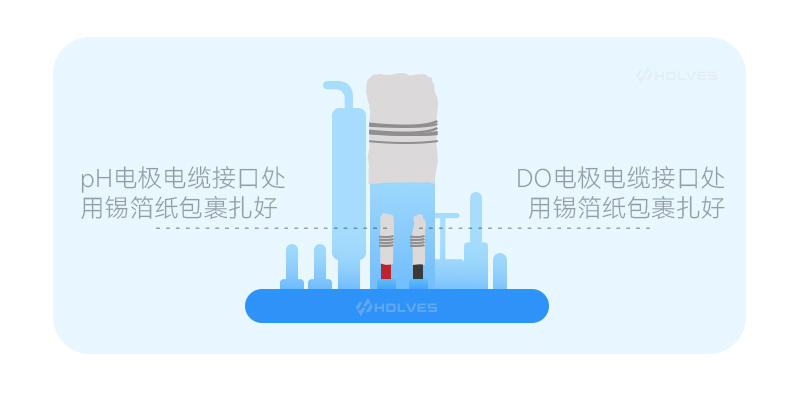 • DO电极电缆接口处用锡箔纸包好并用皮筋捆扎,防止灭菌过程脱落,影响电极性能;
