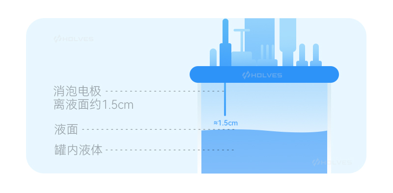 取下消泡或液位电缆线,将消泡或液位电缆插到底,灭菌后定位到所需要的高度后就不要再压下去,消泡电极的高度离液面约1.5cm处。