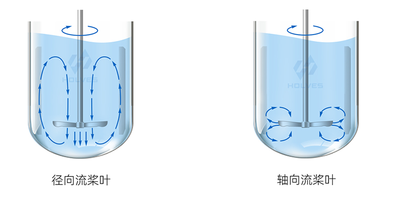当液流从搅拌桨轴推向罐体内壁便形成径向流,当液流沿搅拌桨轴上下推动便形成轴向流,同理当搅拌桨带动液体既有径向流动又有轴向流动时便为混合流。