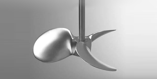 也被称为推进式搅拌桨,如图所示。桨叶前面可为平面或凹面,但背面都是凹面。在旋转时使液体向前方呈轴向流排出,使之在罐内形成循环,用于产生轴向流。这种桨叶循环速度较高,但是循环量较大,搅拌时产生的剪切力较小,但其和径向流桨叶一样,均是产生的单向流,因此混合效果较差,常用于低粘度流体,常用转速范围为100~500rpm。此类桨式及推进式桨叶对气体吸收过程基本上不适用,只有在少量易吸收的气体或要求分散度不高时才能应用。它主要用于液-液体系的混合、使温度均一化、在低浓度固-液体系中防止淤浆沉降等或者某些特定的厌氧培养。 |
